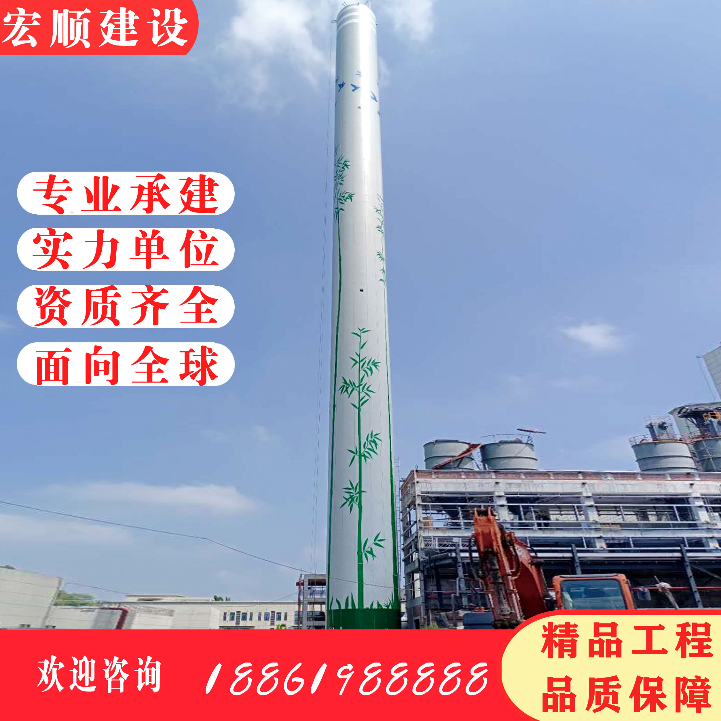 煙囪安裝爬梯(煙囪刷油漆)工程。本工程煙囪為傳統(tǒng)的單筒式錐形鋼筋混凝土煙囪,煙囪高度100m,原內(nèi)襯采用耐酸膠泥砌筑耐火磚,原隔熱層采用憎水性珍珠巖板。為適用脫硫濕煙氣的使用條件,必須對其內(nèi)壁進(jìn)行防腐處理。煙囪內(nèi)壁高壓水槍沖洗,煙囪內(nèi)壁聚合物砂漿修補(bǔ)找平,采用硅寶102封閉底涂+硅寶877耐酸耐溫粘結(jié)劑+輕質(zhì)CLT-Ⅱ?;沾纱u組成的隔膜防腐系統(tǒng)進(jìn)行防腐。本工程工期為50天。
